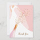 Bröllopsfest platta tackkort har en brud i hennes klänning och slöja på en rosa kvarts rosa bakgrund med en champagneflaska, glas och en spray av falska sequins på framsidan och ditt tackmeddelande på baksidan. MATCHANDE artiklar i vår butik.