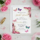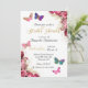 Bröllopsfest Pretty Chic Blommig Rosa Fjäril Inbjudningar