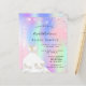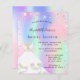 En modern, stilren och glamourös inbjudan till bröllopsfest. En rosa, lila och mintgrön holografisk bakgrund med falska gnistor och en vit klänning. Namnet skrivs med en modern handskriven stilsnack. Anpassa och lägg till din festinformation.