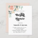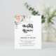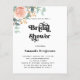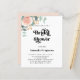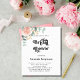 En chic vit bakgrund. Dekorerad med en rosenguld och rosafärgad blommig, rosblomma och gröna akvarellmålade eukalyptusblad, kvistar, grönska och en falsk guld kvist. Personifiera och lägg till namnet på den blivande bruden och festdetaljer.