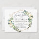 Rustik akvarell Alabaster Blommor och grönska, Eukalyptus i silvergrön lövverk och falskt gult sött bikake-mönster. Accenterad med elegant och modern romantisk kalligrafi skrift Bröllopsfest Inbjudningar. Gör-det-själv bakgrundsfärg.