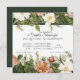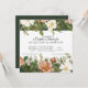 Modern, rik smaragdgrön skogsbakgrund med levande korall med rosablush och elfenbensvit färgpalett är romantisk och fantastisk. Korall med en touch av röda peonior, rosablushrosor och elfenbensklematis blandas med skogssamlade ormbunkar och samlad trädgårdslövverk. Bröllsdusch inbjudan suite med pappersfestartiklar för att koordinera. Detta handmålade akvarellkonstverk skapades av konstnären Audrey Jeanne Roberts. Copyright.