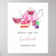 Söt akvarell bröllopsfest te party gästbok skylt affisch med söt tekanna illustration. Om du behöver hjälp med någon av mina mönster, vänligen kontakta designern, Kristine Lee, här på Zazzle. Designad och illustrerad av Kristine Lee Designs www.kristineleedesigns.com