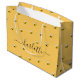 Dekorerad med glada, leende gula och svarta humlor. En gul bakgrund. Anpassa och lägg till ett namn. Namnet skrivs med en stor modern handskriven stilspråk med svängar. För att behålla svängarna, ta bara bort exempel namnet, lämna mellanrummen eller emojierna före och efter namnet.