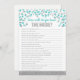 Bröllopsfest spel Hur väl känner du bruden? i turkos och blått. Utmana dina gäster att svara på frågor om den blivande bruden.
