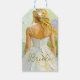 Bröllopsfest vit klänning på abstrakt bakgrund presentetikett