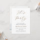 Detta informella bröllopsmeddelande fungerar också som en inbjudan till bröllopsfesten. Dubbelsidig inbjudan till bröllopsfesten med "Låt oss festa" i falskt guldtryck med text som tillkännager det nygifta parets äktenskap och inbjuder gästerna till en avslappnad bröllopsfest. Anpassa med ditt foto på baksidan.