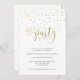 Vår 'Låt oss festa' bröllopsinbjudan är ett bra sätt att inbjuda gäster till kvällens festligheter efter er bröllopsceremoni. Guldconfettidesignen kommer att få dem att känna sig festliga!