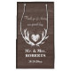 Vintage hjort för brunkornigt trä bröllopsfest gynnar presentsäckar. chicens vilt i land/temadesign för jakt. Plattor av land-chic med vävt hjärta och namn initialer. Monogrammat med avklädd kärlek-symbol och elegant-typografi. Personlig med snyggt brev för brud och brudgumm plus datum för giftermål. Perfekt ge bort-token/souvenir-påsar för rustiskt bröllop som utomhusträdgårdslada giftermål. Söt svart och vitt färg. Mr och Mrs Newlyweds. Tack för att du delar vår speciella dag!