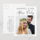 Elegant elopement eller mindre bröllopsinbjudan och mottagning inbjudan postkort. Framsidan visar ert bröllopsdagsfoto och "Lyckligt för alltid fest" i en blandning av enkel typografi och ett modernt skrivsätt. Under ert foto läggs era förnamn och bröllopsdatum. På baksidan kan ni anpassa er hälsning mer detaljerat och lägga till fest eller mottagningsdetaljer och era namn i ett signaturliknande skrivsätt.