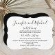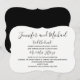 Denna roliga bröllopsfestinbjudan har en glad svart font för era namn följt av "fick varann" på en vit fästbjudan. Ni kan anpassa var ni gifte er följt av era herr och fru och sedan alla detaljer om er bröllopsfest! Baksidan av inbjudan är svart för att skapa en enkel men elegant bröllopsinbjudan. Copyright henishouseofpaper