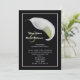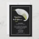 Paret föredrar ofta att bjuda in vänner till en efterbröllopsfest istället för en bröllopsfest. Det är ett bra sätt att låta alla veta att ni är gifta och fira er äktenskap efter bröllopet. Denna eleganta blommiga efterbröllopsinbjudan har en vit callalilja på svart bakgrund. Brudens och brudgummens namn visas till vänster om liljan med alla detaljer om er efterbröllopsfest nedan. En mycket elegant och vacker efterbröllopsinbjudan. Copyright henishouseofpaper