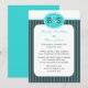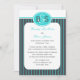 Denna bröllopsfestinladan är en mycket modern design eftersom den har det uppdaterade monogrammet (ett hans och hennes monogram) högst upp. Dessutom är de moderna färgerna robinäggblått och stålgri parade ihop i en vacker randig design. En fantastisk bröllopsfestinladan. Copyright henishouseofpaper