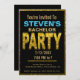 Guld bröllopsfestinladning. Denna inbjudan har guldbokstäver med en fet "PARTY" i glitter med en glitterkant för att lägga till lite kul. Notera: Detta är en grafisk konsttryckdesign av Amelia Carrie och innehåller inget rörigt glitter.