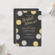Denna moderna bröllopsfestinladning är perfekt för en bröllopsfest oavsett tema. Funktioner stora champagnebubblor i nyanser av silver och guld på en svart taffel bakgrund.