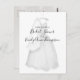 Enkel bröllopsfest Postkort. En snygg bröllopsfestklänning hänger med bröllopsslöjan i väntan på den stora dagen. En elegant och lekfull klänningsdesign för din bröllopsfest eller bröllopsfest. En enkel trendig bröllopsklänning Ett sött sätt att önska bruden lycka till på hennes bröllopsdag!