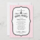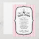 Paris bröllopsfestinbjudningar med en parisiskt stil rosa, svart och vit design med Eiffeltornet. Anpassa formuleringen med din bröllopsfestinformation. Förhandsgranska exakt hur den färdiga inbjudan kommer att se ut på skärmen innan du beställer.