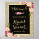 Välkomstskylt för bröllopsfest Guld Glitter Gnistrar Blommor Affisch.