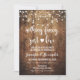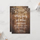 Inbjudan till bröllopsfest för bortresta par med rustik trädgård och slingrande ljus. Inget fancy, bara kärlek rustik bröllopsmottagning inbjudan.