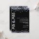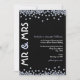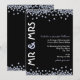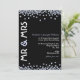 En snygg, modern inbjudan till diamantbröllopsfirande i svart och vitt med blekblå accenter. Längs med inbjudans övre och nedre kanter ligger diamantglitter som bildar en delvis ram. På vänster sida av inbjudan står "Herr & Fru" i fet stil, medan själva inbjudningstexten löper nedför höger sida. En rolig blandning av moderna typsnitt har valts för att accentuera designen.
