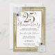 Vacker falsk folie kant med glänsande konfetti höjdpunkter på den övre och nedre kanten. Elegant vit, guld och silver blomsterdesign. All text är justerbar och lätt att ändra för dina egna festbehov. Stor elegant 25-års bröllopsjubileum design. Finns i olika färger.