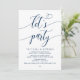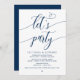 Vacker modern marinblå kalligrafi, bröllopsinbjudan, inbjudningskort (Låt oss festa). Detta är perfekt för din bröllopsfest och efterbröllopsfirande. Lägg till dina detaljer i matchande teckensnitt / bokstäver.