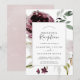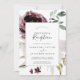 Den här bröllopsinbjudan med blomsterromantik är perfekt för en elegant fest efter vigseln. Den moderna rustic boho-designen har romantiska akvarellblommor i mjuka toner av burgunderröd, mauve, rosafärgad och krämvit med gröna blad. RSVP-kort säljs separat, eller så kan du lägga till RSVP-information på baksidan av kortet.