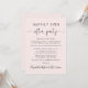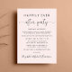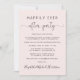 Stilfull ljusrosa elopement eller privat bröllopsannonsering och bröllopsfirande eller festlig invit. På framsidan står "Happily Ever After Party" skrivet i en blandning av enkel typografi och elegant script med svängar, och du kan anpassa ditt meddelande och din inbjudan mer i detalj och lägga till dina namn i ett signaturliknande skript. Baksidan visar dina förnamn och bröllops- och mottagningsdatum.