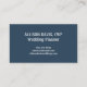 Affärskortet med samordnaren för Bröllop i Elegant bröllop är designat med en brud och en groom på en strand vid solnedgången. Texten innehåller: Ditt namn och din titel. Den omvända texten innehåller: Ditt namn, Titel, Mobilt, E-post och webbplats på en matchande blå bakgrund. Om du vill anpassa dig infogar du bara dina uppgifter i vår enkla mall och ersätter exempeltexten.