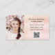 Ett boho stil-affärskort för en bröllop-fotograf eller bröllopsfixaren. Ro guld, rosa, gradientbakgrund som dekoreras med pampasgräs och blommigtar för rosa. Anpassa och lägg till ett foto från bröllop, ditt namn och titel eller text. Tillbaka: Mallar för Profilfotot, namn, rubrik, mobilt nummer, e-post och webbplats adress, din egen QR-kod till webbplatsen eller social-mediekontot.