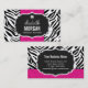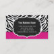 Exempelbilden: Trendig Snyggt Zebra tryck Diamond Girly Shock rosa Personlig Business Card-mall. Alla textstorlekar stil, färg, kan ändras för att passa dina behov. Det här är perfekt för Mode Stylist, Hairstylist, Hairdresser, Jewelry Designer, Nail Technician, Cosmetolog, Makeup Artist med mera. Kontakta mig om du behöver anpassa dig.