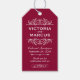 Perfekta för vingårdsbröllop eller presenter av vinflaskor, dessa eleganta vintage vinjetter i kartong med utsmyckad stil har ett anpassat bröllopsmonogram med brudens och brudgummens namn, bröllopsdatum, typ av vin och ett tackmeddelande som kan anpassas helt. Vit text på anpassad mörkröd bakgrundsfärg.