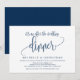 Denna moderna kalligrafiska designtemerade inbjudningskort (det är en efterbröllops middag) är perfekt för din bröllopsfirande/annonsörsfest. Lägg till dina detaljer i matchande marinblå typsnitt / bokstäver.