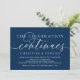 Modern romantisk minimalistisk Enkel Kalligrafi Marinblå Skrift, Bröllopsflykt inbjudningskort (Firandet fortsätter). Det är perfekt för din bröllopsflykt och festfirande efter din bästa dag. Lägg till dina detaljer i matchande svart teckensnitt / bokstäver.