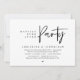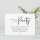 Modern minimalist bröllopskort med tema skrivstil, perfekt för bröllopsfirande eller efterfest. Lägg till dina uppgifter i matchande svart teckensnitt.