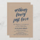 Detta är det Moderna Enkla Rustika Marinblå Kalligrafi, Brun Kraft-tema, Bröllopsflykt Inbjudningskort (Inget fancy, bara kärlek). Ett perfekt kort för att inbjuda din älskade familj och gäster till din bröllopsflykt, och mottagning festfirande. Lägg till dina firandedetaljer i matchande teckensnitt / bokstäver.