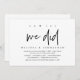 Modern svart skript-tema, bröllopsinbjudningskort (ja det gjorde vi). Det är perfekt för din bröllopsfest / efterbröllopsfirande. Lägg till dina detaljer i matchande svart teckensnitt / bokstäver.