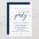Vacker modern marinblå kalligrafi, Bröllopsflykt-meddelande, Inbjudningskort (Lycklig För Evigt-fest). Detta är perfekt för din bröllopsmottagning och efterbröllopsfirande. Lägg till dina detaljer i matchande typsnitt / bokstäver.