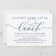 Modern romantisk minimalistisk Enkel Kalligrafi Marinblå Skrift, Bröllopsflykt Lunch inbjudan kort (Lycklig För Evigt Lunch). Det är perfekt för din bröllopsflykt tillkännagivande och festfirande, efter din bästa dag. Lägg till dina detaljer i matchande svart teckensnitt / bokstäver.