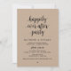 Vacker modern casual skript, i svart skrift, på brun kraft bakgrundspapper, Bröllopsflykt tillkännagivande, Inbjudningskort (Lycklig För Evigt-fest). Detta är perfekt för din bröllopsmottagning och efterbröllopsfirande. Lägg till dina detaljer i matchande teckensnitt / bokstäver.