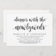 Modern Script-tema, bröllopsinbjudan för bröllopsflykt (middag med de nygifta). Det är perfekt för din informella bröllopsfest vid sjön, middag, dans och fest.