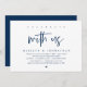 Modern marinblå skript tema, bröllopsflykt inbjudningskort (Fira med oss). Det är perfekt för din bröllopsflykt mottagning / efterbröllopsfirande. Lägg till dina detaljer i matchande teckensnitt / bokstäver.