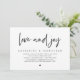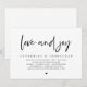 Modern svart script-tema, bröllopsinbjudningskort för bröllopsflykt (Kärlek och glädje). Det är perfekt för din bröllopsfest efter bröllopet / efterbröllopsfirande. Lägg till dina detaljer i matchande svart typsnitt.