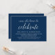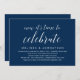 Vacker Elegant Marinblå Skript, Bröllopsflykt Tillkännagivande, Inbjudningskort (Nu är det dags att fira). Detta är perfekt för din bröllopsmottagning och efterbröllopsfest. Lägg till dina detaljer i matchande typsnitt / bokstäver.