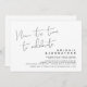 Detta är bröllopsflyktens festinbjudningskort, med minimalism / minimalistisk svart skriftdesign (Nu är det dags att fira Inbjudan)
