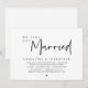 Modern minimalist skript-tema, bröllop flykt inbjudan kort (vi har gift oss). Det är perfekt för din bröllopsfest / efterbröllopsfirande. Lägg till dina detaljer i matchande svart teckensnitt / bokstäver.