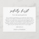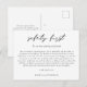 Bröllopsfördröjning Typografi Säkerhet Först COVID-meddelande. När omständigheterna tyvärr betyder att du måste skjuta upp ditt bröllop, kommer detta praktiska vykort att göra det möjligt för dig att informera dina gäster. Säkerhet Först är skrivet i en elegant handskrift och resten av texten på framsidan och baksidan kan du enkelt anpassa. Visas i svart och vitt, kan ändras till valfri färg via alternativet Anpassa ytterligare.