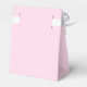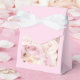 Bröllopsrutan visas på rosa med en vit bandbåge och ett fototryck av söt pastel rosa ros. Anpassa det här objektet eller köp som det är.