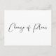 Varna dina gäster att omständigheterna kräver att du skjuter upp ditt bröllopsdatum med detta enkla svart-vita bröllopsändringsmeddelande. "Ändring Av Planer" skrivs i modern skrift på framsidan. På baksidan kan du anpassa ditt meddelande mer i detalj.