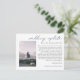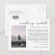 Bröllopsuppskjutande Fotouppdatering QR-kod manus. När omständigheterna tyvärr gör att du måste skjuta upp ditt bröllop, kommer ett praktiskt vykort göra det möjligt för dig att informera dina gäster. Bröllopsuppdatering är skriven med en elegant stil i grått högst upp och resten av texten på framsidan och baksidan kan du enkelt anpassa. Ersätt mallens exempelbild med ditt eget favoritfoto av er båda och ladda upp en QR-kod till din hemsida för att ersätta exemplet på baksidan.